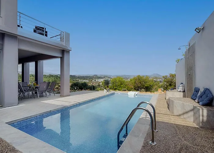 Mythos Luxury Villa è situata a 5 minuti di passeggiata da Saint Nectarios Church e a 10 minuti a piedi da Liquid. È dotata inoltre di 3 camere da letto e 2 bagni.